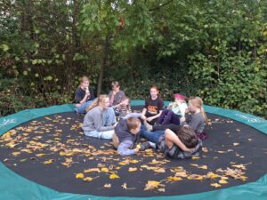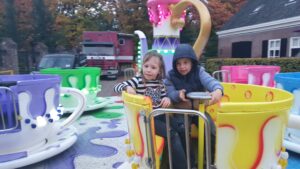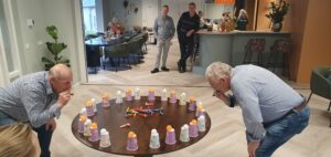 We verzamelden om 10.00 uur bij ons Dorpshuis “de Stek”. En waren met 28 deelnemers van 5 jaar tot 70/75 jaar, een gezellige groep. Hier begonnen we met koffie/thee en cake en 2 leuke spellen, te weten: 1) ping pong balletjes van een bekertje blazen in de snelste tijd en 2) kegelen waarbij je + en – punten kon halen.