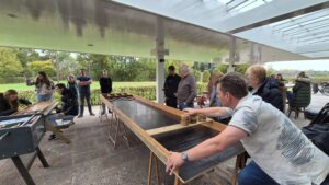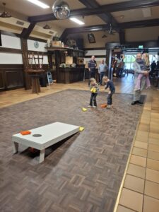 Toen het tijd was gingen we weer met zijn allen oppad naar café Kloosterzicht ons volgende doel. Hier deden we het spel cornhole gooien. Zowel jong als oud vonden dit een geweldig leuk spel.