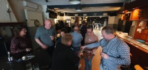 Onder het genot van hapjes (geschonken door Joost en Heidi) en een aantal drankjes werd hier de uitslag van de activiteiten van deze dag bekend gemaakt. Evelien vertelde daar dat het aantal punten wat je gehaald had op de grote sjoelbak werden afgetrokken van de gewone sjoelbak. En wat denk je Jelle van der Leest was de winnaar en kreeg een wisselmuts. Helaas moest hij hierna afhaken om te gaan werken.
